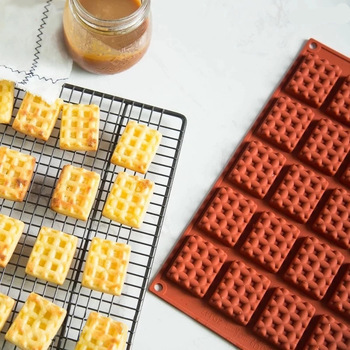 BPA-freie 20-Kavitäten-Silikon-Rechteck-Waffelformen Kuchen-Keksform in OPP-Beutel verpackung
